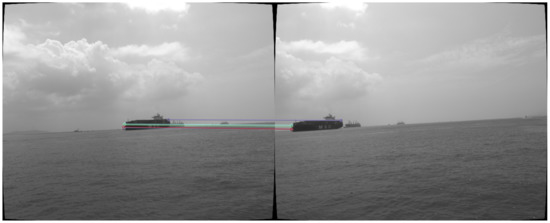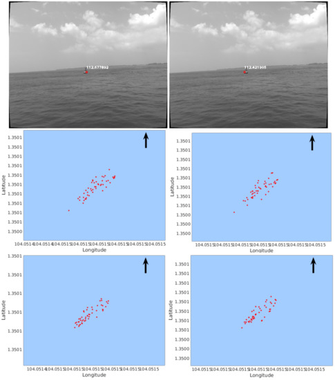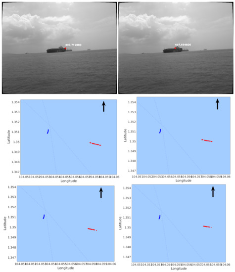 The proposed approach gets rid of the bulky structure and difficult calibration of binocular stereo. On the contrary, it is very convenient to setup and requires only simple calibration for the intrinsic parameters of the camera. Its ranging ability is approximately 100–1000 m. However, it can only reconstruct points from static scenes, and the USV should be in a state of travel. Furthermore, measurement noise from the GPS, the compass, horizon detection, and especially feature matching might influence the accuracy of this approach.