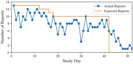 Therefore, we implemented a four-stage design (one baseline stage and three intervention stages) to help users determine optimal behaviors with each stage including 4–7 days of data points as suggested by Barlow and Hersen [42]. In particular, we wanted to include increases and decreases in the behavior to see possible optimal behaviors.