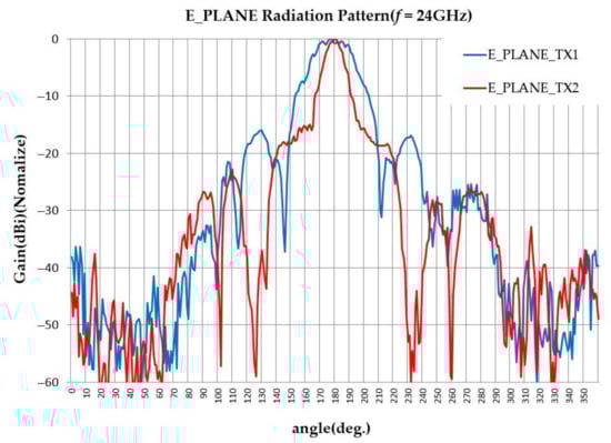 The transmitting antennas are designed by the lens to have a 12° beam width for the high-gain antenna and a 36° beam width for the low-gain antenna, and the side-lobe levels of both antennas are lower than 15 dB as shown in Figure 5.