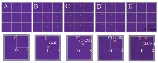 Four types of EPS array were fabricated together with pixel wall by a one-step lithography process, as shown in Figure 3B–E. The (x,y) coordinates show well-controlled position and shape of the EPS distributed inside pixels.