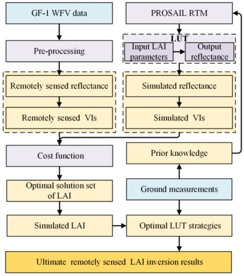 Flow chart of remotely sensed winter wheat leaf area index inversion.