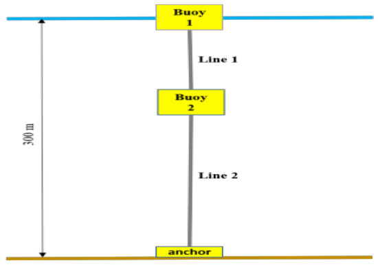 As stated above, in order to support the cable weight (Line 2 and partially Line 1), a cylindrical intermediate buoy of 40 kg mass with a buoyancy of 2000 N has been chosen.