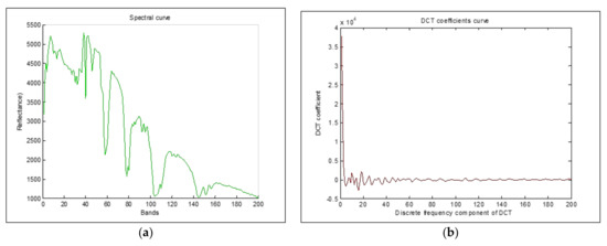 In our procedure, we transform the spectral data from the original feature space to a reduced feature space using DCT. We generate a frequency domain profile for the spectral curve of each pixel as illustrated in Figure 1.