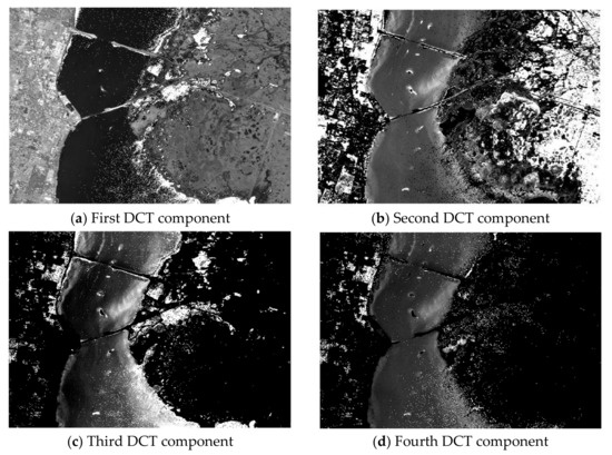 Assuming that each pixel x is a discrete signal represented by a vector x = [x0, x1, x2, …, xP−1] in P dimensional spectral bands space (P is the count of spectral bands), the DCT coefficients of vector x are given by [36]: