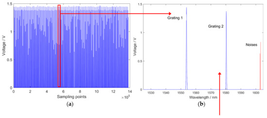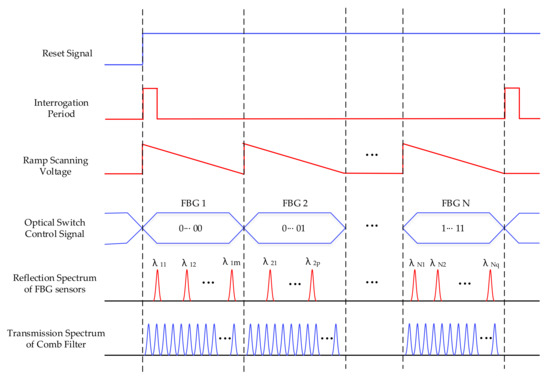 - Dai, Y.; Liu, Y.; Leng, J.; Deng, G.; Asundi, A. A novel time-division multiplexing fiber Bragg grating sensor interrogator for structural health monitoring. Opt. Lasers Eng. 2009, 47, 1028–1033. [Google Scholar] [CrossRef]