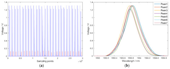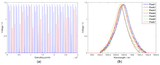 - Chen, X.; Dong, X.; Lv, H.; Hu, Y.; Yu, X.; Chen, X.; Liu, S. Real-time Interrogation Technology for Large-scale Fiber-ring Laser Sensor Array. IEEE Photonics J. 2017, 9. [Google Scholar] [CrossRef]