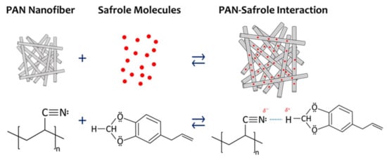 Schematic representation of the interaction mechanism between safrole and PAN nanofiber.
