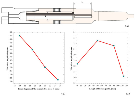 Figure 6b. There is a tendency that the vibration amplitude increases when the inner diameter of the piezoelectric plate decreases. However, the diameter of the drill’s inner hole cannot be too small due to the limit of the screw. In this condition, the relatively best radial parameters are determined from the structure limit.