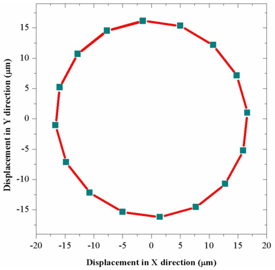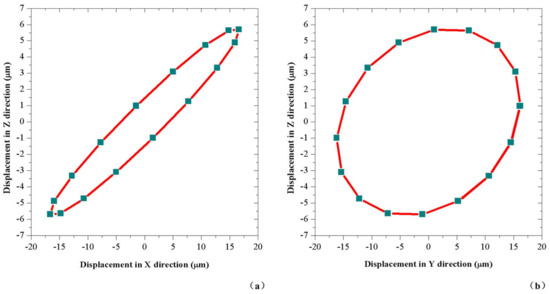 Figure 8 by applying excitation voltage with parameters of 1779 Hz and 200 V in the FEM transient analysis. The result shows that the edge of the drill bit has a circular trajectory vibration in XOY plane, whose amplitude is about 16.2 μm and the vibration speed is calculated to be about 181 mm/s.