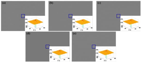 where is a function of pixel position which reflects characteristic information of the test gas. Meanwhile, from the definition of SHS, it can be found that is formed by the superposition of interference fringes of different diffraction orders, and fringe structure and fringe period depend on the spectral distribution of the test gas. For Equation (10), if the system is determined, is a constant. Then for different kinds of gases, is different and assume that is a constant, the difference of is reflected in fringe structure, fringe period of the T-map which can be used as the basis of gas type judgment. For the same kind of gas, is same, so the fringe structure and fringe period is unchanged. When is different, there is a difference of in brightness, which can be the basis of gas concentration judgment. Therefore, it is feasible in theory to use as a sensing mechanism for constructing an e-nose system. In such condition, each pixel of plays a role of virtual sensor, then the huge number of pixels obviously increases the number of sensing units in the system.