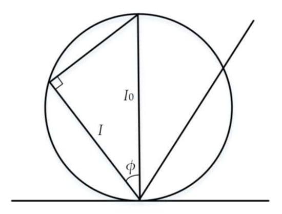 Combined with Equations (5) and (6), it can be concluded that when the incidence is vertical, i.e., the measuring point inclination angle is 0, ω´ = ω1, and θ = 0, and when the inclination is accompanied by an inclination angle, i.e., the measuring point inclination angle is θ, ω´ = ω1 and θ ≠ 0, and the inclination error is