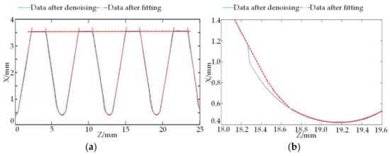 Contour fitting and partial enlarged drawing. (a) The contour data after fitting; (b) partial enlarged drawing of thread inter diameter section.