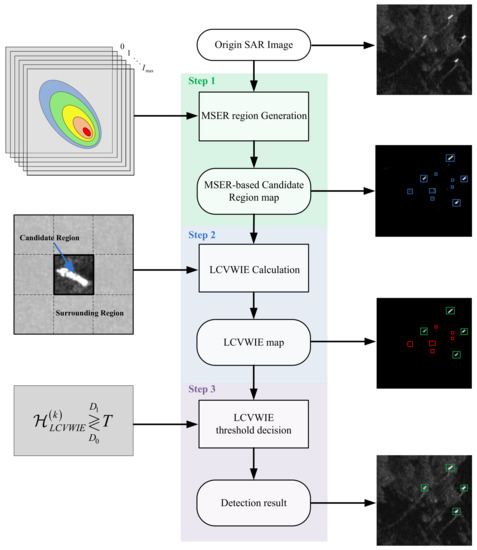 Considering the real-time and accuracy requirements for practical detection applications, we implement the ship detection in two stages. In the first stage, the ship candidate regions are generated quickly by the prescreening algorithms. In the second stage, the correctness of each candidate region is verified by the proposed LCVWIE method.