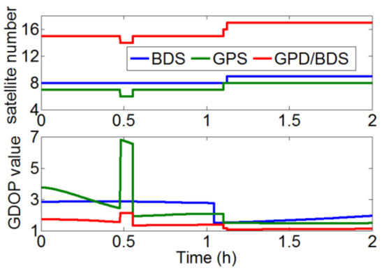 Additional difficulties will occur in terms of the troposphere and height solution when BeiDou Navigation Satellite System (BDS) observations are used in medium-long baseline RTK. BDS can provide reliable positioning results by itself [22,23,24]. Together with GPS, the ambiguity fixed rate and the precision of single-epoch RTK are increased [14,25,26]. However, BDS has three different orbit types: geostationary Earth orbit (GEO), inclined geosynchronous orbit (IGSO), and medium Earth orbit (MEO); therefore, its observation time, geometric structure, and change rate of satellite geometry differ from those of the GPS system. When considering the strict relationship between geometric structure and the troposphere parameter, different characteristics will be observed in BDS medium-long baseline RTK.