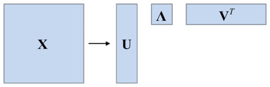 where U and VT are unitary matrices of m × m and n × n respectively, and span the row and column space of X respectively. Λ is a diagonal matrix of m × n, and all values on diagonal are eigenvalues of X. All eigenvectors of U are orthonormal to each other; the same may be said of V, so SVD can present an orthonormal coordinate system for X by spanning the spaces [37]. X can also be presented regard to k-mode products as follows.