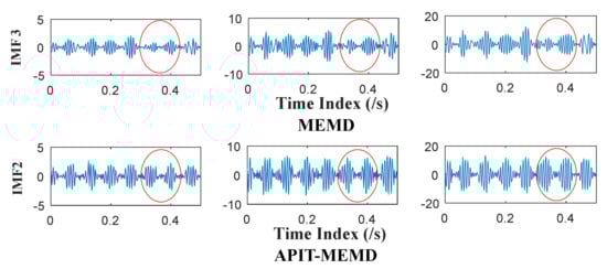 Selected time domain plots of IMFs of MEMD and APIT-MEMD.