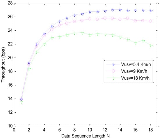 Protocol throughput simulation for data sequence length N and velocity of USV.