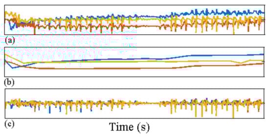 where  denotes the set of gravitational vectors minimising the functional in (2), which defines the -trend filter. The linear acceleration is then estimated by subtracting the estimated gravitational trends from the raw sensor output:  for ; see Figure 4.