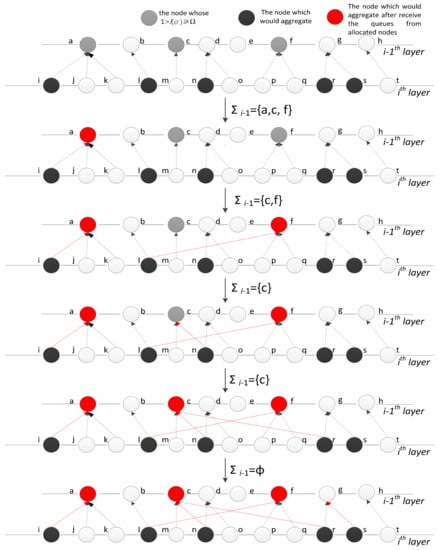 After data aggregation, the redundant data is removed, and the packet queue length sent by the nodes in the lower layer is smaller than the original queue length. The ratio of the length of the queue after data aggregation to the length before data aggregation is defined as the data aggregation ratio (see from Figure 2).