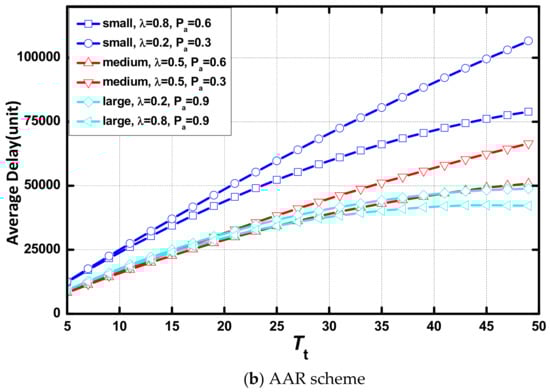 In the AAR scheme, the delay of each node is reduced. The delay in the common scheme is considered as . It can be described by Equation (7):