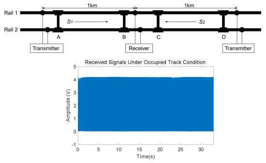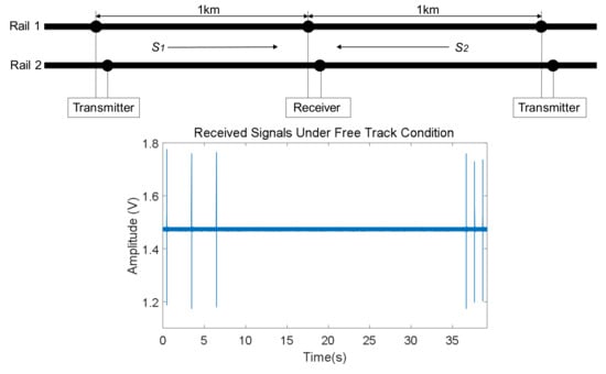 Different methods have already been applied to monitor track status. Among these, track circuits are the most typically used and extended method. In their basic configuration, a track circuit provides a certain energy to each rail, so a relay coil wired across rails can report the track condition based on its own status (energized or de-energized). However, track circuits are significantly affected by the ballast parameters, and this may lead to the appearance of false alarms with regard to short-circuits [4,5]. In [6], the Salient System Company proposed a method, which laid out sensors every 30~60 m along the track, so every sensor can detect the track strain and temperature, as well as report data to a monitoring center through a wireless module. This method is suitable for new railway lines to be built in the coming years, but not for existing ones, since it is complicated to determine the zero-strain point (required by the algorithm) for a track already installed and in operation. In [7], a detection method based on using the unbalanced traction return currents is proposed, although it is important to note that this approach requires a train passing through the section under analysis to detect any breakage status.