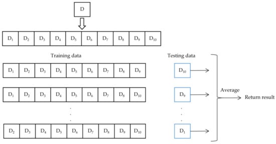 Furthermore, we used the ten-fold cross-validation method which is a common measure in both traditional machine learning and deep learning to get some evaluations on data. The ECG datasets were divided into 10 independent folds. The number of samples in each fold is equal. Each time, 9 folds are used for training and the remaining fold is used as the testing dataset, with no data intersection. This is repeated ten times at the same learning rate and return average evaluations of ten results as shown in Figure 6. Each time, the training dataset and testing dataset are different in ten-fold cross-validation, and can be summarized as follows: