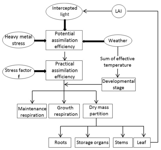 Simplified structure of the improved WOFOST model with stress factor f.