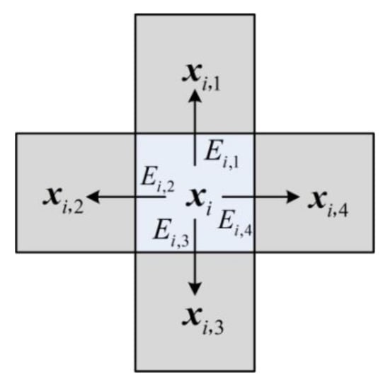 The visual contrast can be measured by the block-based gradient, which is the maximum energy difference between the current block and its four neighboring blocks. As shown in Figure 3, we select four neighboring blocks xi,j (j = 1, 2, 3, 4) of xi, and calculate the energy differences between xi and them, as follows,