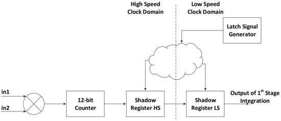 19] is that they implemented the first stage as a pre-scaler which is not a part of readout values, while we have implemented it as two stage accumulation. The idea of design partition in low-speed and high speed clock domains arisen from our baseline implementation [