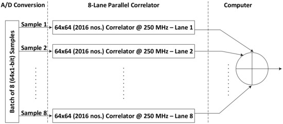 Figure 4 shows how eight parallel processing correlators are used to enable the processing of 8 samples at a time as suggested by [