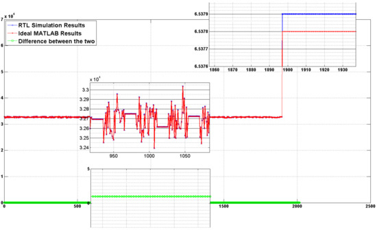 Results from Vivado RTL simulation exactly followed the results from MATLAB verifying the functionality of our design. The plot of difference between both the results is a straight line showing a constant bias of 1 in RTL design, as shown in