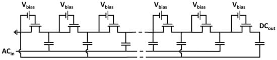 30]. As the peak-to-peak ac voltage approaches the transistor threshold voltage, the higher-order compensation chain operates in the triode region, whereas the diode-connected transistor chain is still operated in the sub-threshold region or in cutoff mode. The choice of a double rectifying chain entails an increased circuit area occupation, and hence there is a possible argument for power dissipation.