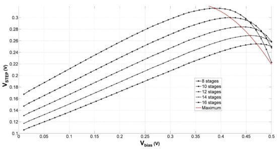 3), does not inherit the nonlinear voltage–current characteristic of transistors operated in the sub-threshold region. Consequently, the step voltage expression in Equation (