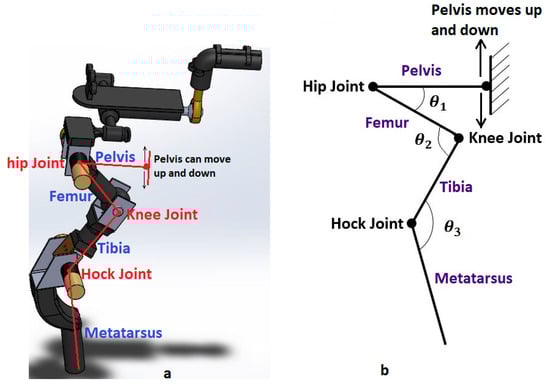 (a) Modified hip joint angle, (b) Modified hock joint angle.