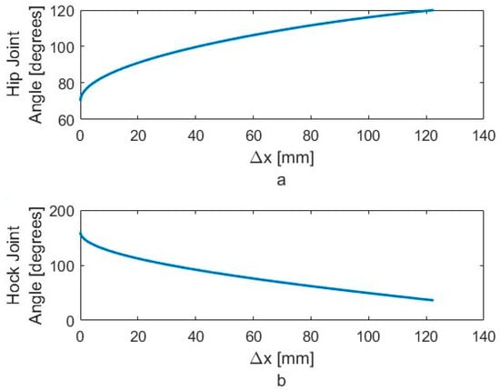 Required motion for monotonically (a) increasing the hip angle and (b) decreasing the hock angle.