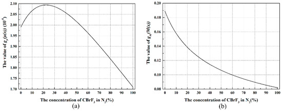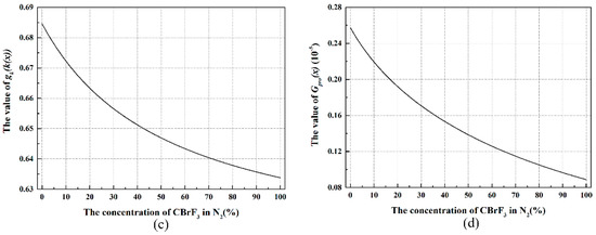 The effect of gas properties on sensing performance to CBrF3 in N2 ((a) the value of with change of CBrF3 concentration, (b) the value of with change of CBrF3 concentration, (c) the value of with change of CBrF3 concentration, (d) the value of with change of CBrF3 concentration).