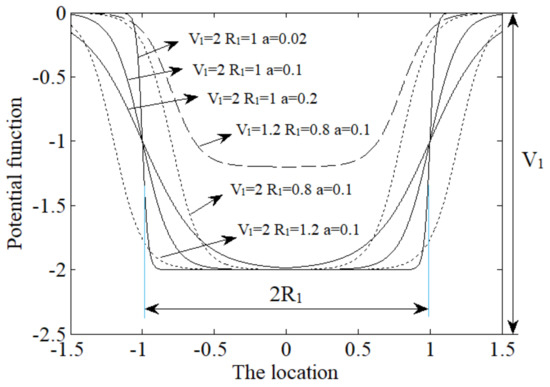 Wherein, represents the depth of the potential well and represents the width. Figure 2 shows the influence of different parameters on the potential function. It can be seen from the figure that the potential well will be steeper when is smaller.