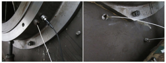 Considering the defect characteristic is weak, the used pressure sensors should be placed near the position of the rotating impeller. According to the actual situation of the Φ800 test rig, radial holes are machined in the selected measuring points so that pressure sensors can be embedded. The probe of sound pressure transducer stretches a certain distance into the pipe inner wall, which is very close to the impeller so that the useful pressure signal containing the crack information can be obtained. PCB 106B is chosen as the sound pressure sensor in the experiment. The maximum dynamic pressure it can withstand is 68.9 KPa.