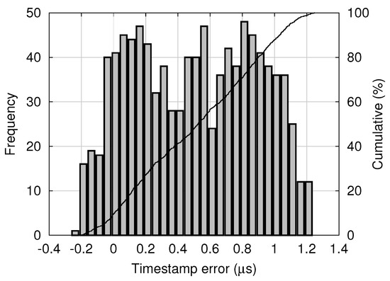 Distribution of timestamp error between the master and the slave.
