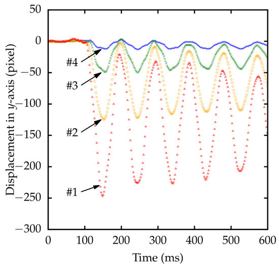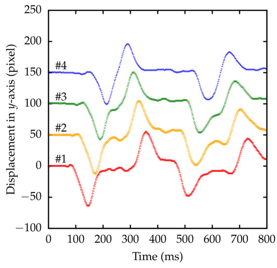 Detected marker positions with respect to the y-axis of the cameras are shown in Figure 13. Due to the rigidity of the rod, all four markers moved in-phase.