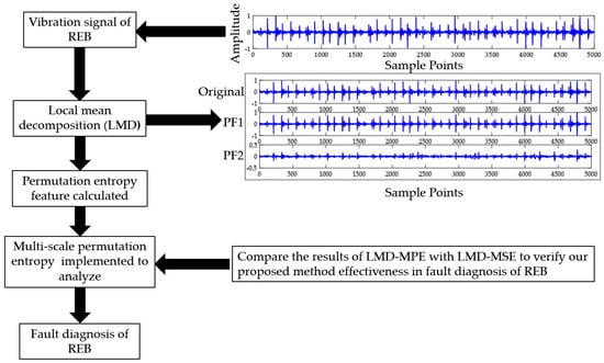 The proposed methodology (LMD-MPE) scheme for REB fault diagnosis.