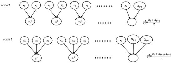 The schematic diagram of a coarse-grained procedure for scales two and three. Figure reproduced from Ref. [21].