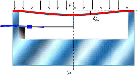 Conventional pressure transducers based on electrical systems, micro-electro-mechanical systems (MEMS), and piezo-ceramic sensors are commercially available. The relevant electrical sensing technologies are electrical strain gauges or vibration wire strain gauges (VWSG), which have limited long-term stability and induce electromagnetic interference (EMI) [2,3]. MEMS and piezo-ceramic sensors are fairly well suited to dynamic pressure measurement; however, as soil pressure is normally static, they do not meet the requirements of soil pressure measurement. In recent decades, fiber optic sensors (FOS) have developed rapidly and show great potential for use in civil engineering. Compared with electrical sensors, FOS have many advantages, such as high accuracy and a high resolution, a tiny size, and resistance to EMI; even more importantly, the sensors can be connected into series in a single fiber [4,5]. Some researchers have used FOS to measure temperature [6], strain [7,8], deformation [9,10], water pressure [11], liquid level [12,13,14,15], humidity [16], and soil pressure [17]. Fiber Bragg grating (FBG) is one of the most widely used FOS technologies, due to its high accuracy and inexpensive data interrogation. For example, FBG has been used to measure soil small strain [18] and soil slope deformation [19,20].
