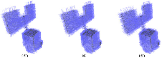 To quantitatively evaluate the accuracy of the generated models, the evaluation in [32,33] is utilized, which was originally designed for accuracy evaluation of multi-view reconstruction. Let the reconstructed point clouds be the reference point clouds ; we first convert the generated geometric model into point clouds by uniform sampling, where the sample number is equal to the point number of . Then, the precision measurement for distance threshold d is defined as: