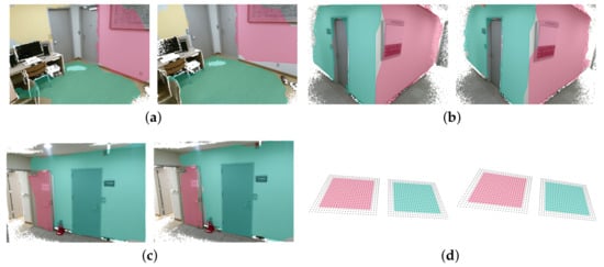 - Raposo, C.; Lourenço, M.; Antunes, M.; Barreto, J.P. Plane-based Odometry using an RGB-D Camera. In Proceedings of the British Machine Vision Conference (BMVC 2013), Bristol, UK, 9–13 September 2013. [Google Scholar]