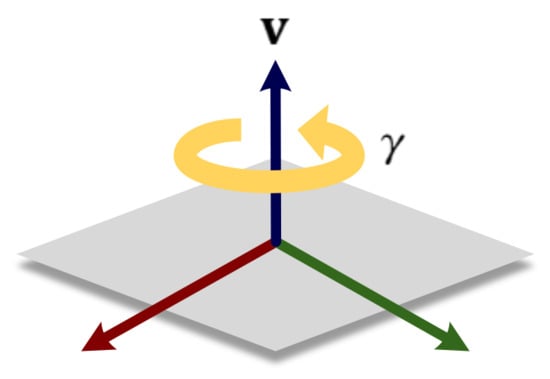 In the 1-pair correspondence case, as shown in Figure 3, the amount of rotation () normal to the plane () cannot be estimated, where corresponds to the one effective eigenvector of the second moment matrix in Equation (2). Here, IMU measurements are only used for compensating an ill-conditioned component regarding of the state that cannot be estimated by the features. For other well-conditioned components of which value can be estimated from the feature, measurements of IMU are not utilized due to their inaccuracy compared to those of features.
