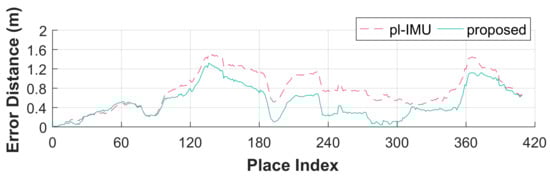 Given the information, two methods were applied. One was a plane-IMU integrated (pl-IMU) method, which was an extension of the plane-based method [] in a way that IMU information could be embedded. The other was our proposed method, which was identical to the previous method except that 1-pair corresponding degeneracy was detected and compensated for.
