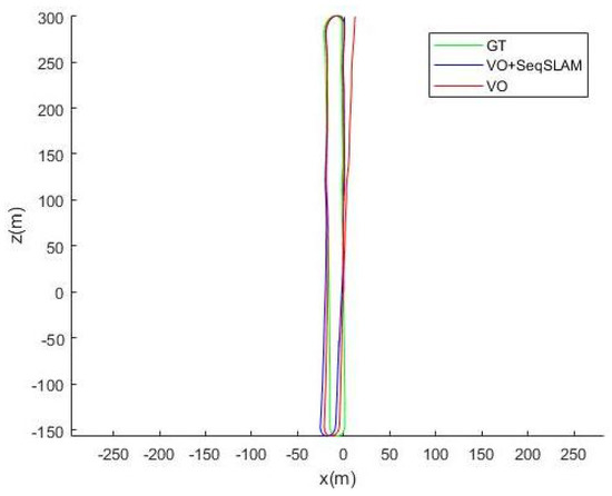Ground truth, Visual Odometry (VO) and (VO+seqSLAM) for Sequence 00.