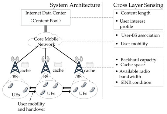 - First, a comprehensive and extended system model is presented, taking into account various aspects such as content property, user interest, user mobility, BS cache space, BS backhaul capacity, and cross-layer sensing capability.