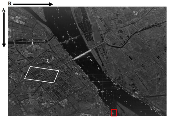 Gaofen-3 (GF-3), a remote sensing satellite of China’s Gaofen project, which is the first C-band multi-polarization spaceborne SAR in China, was launched in 2016. GF-3 can work in 12 different modes, and some of its parameters such as incidence angle, nominal resolution, nominal swath, and polarization can be found in Table 1 in [21]. This satellite not only plays an important role in the fields of ocean surveillance, disaster reduction, and water conservancy, but also provides high-quality data for scientific experiments, which greatly promotes the development of SAR. In normal SL mode, GF-3 sets its antenna beam on a VRP below the ground while it flies in space, which can result in a trade-off between resolution and coverage in azimuth, and achieves the nominal resolution of 1 m with a swath of 10 km in both range and azimuth. In order to further explore GF-3’s potential in improving azimuth resolution, ST imaging experiments were performed after the satellite had been in operational application. In this mode, the antenna can always point to the same scene and get the highest theoretical resolution of about 42 cm by setting its steering angle range within ±1.9°.